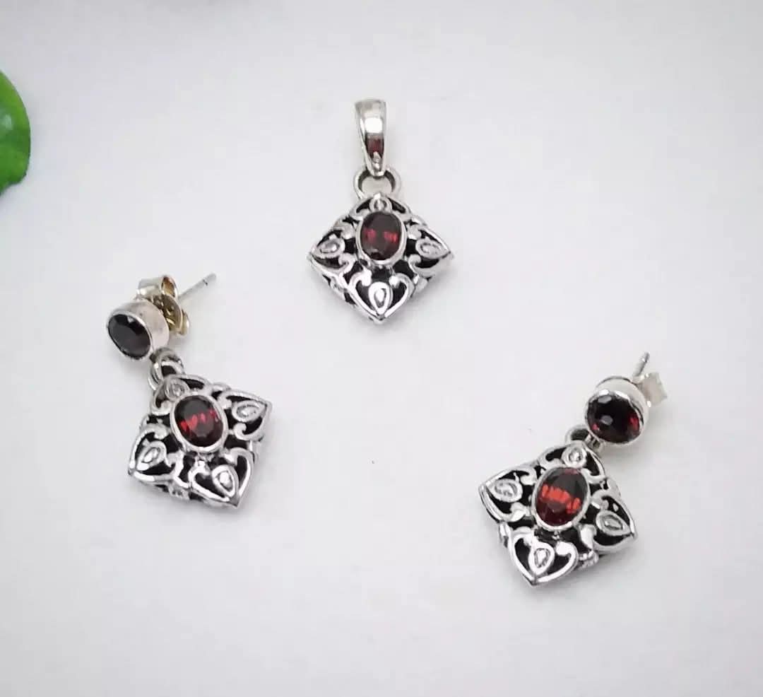 Conjunto pendientes y colgante montados con granates en plata 925